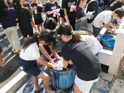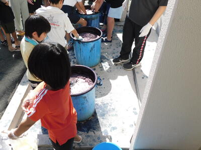 4年と6年で藍染め体験がありました