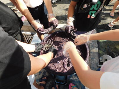 6年はTシャツを染めました
