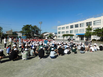 今年度全校で整列して集合する初めての避難訓練でした