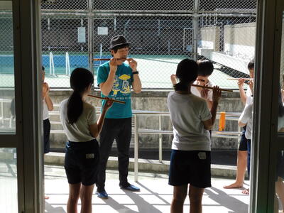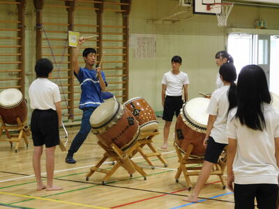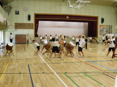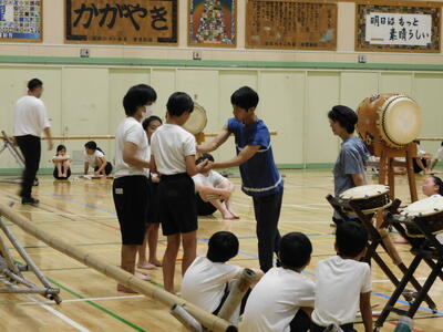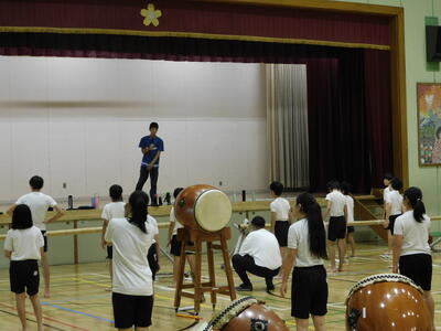たまっ子座による和太鼓指導がありました