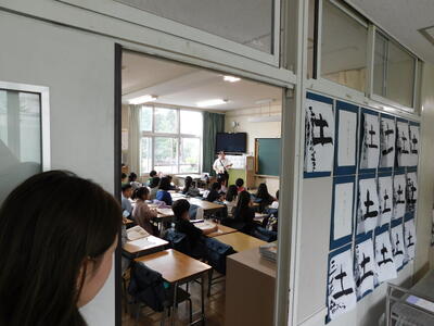 説明の後中学校の学習の様子を廊下から見学しました
