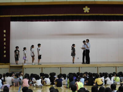 学校で一番多く本を借りた学級を表彰しました