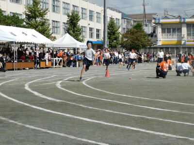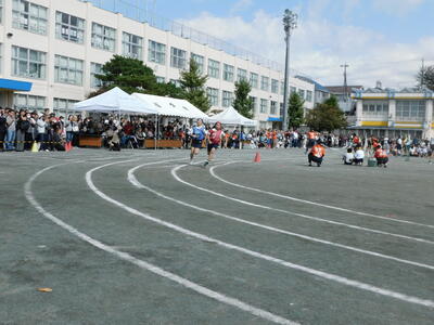 5・6年の選抜メンバーがそれぞれの組の代表とし走ります